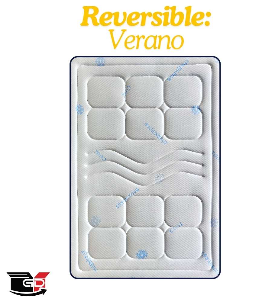 La tecnología Cool Hilo Frío integrada en este modelo es capaz de reducir la temperatura superficial entre 4 °C y 8 °C, proporcionando un descanso termorregulado incluso en ambientes cálidos. Su tejido técnico cuenta con propiedades hidrófobas, antibacterianas y antiestáticas, asegurando higiene, durabilidad y bienestar constante. Además, el diseño reversible verano/invierno del Colchón Blue Cool ofrece una experiencia adaptable, con una cara fresca para el verano y otra más acogedora para el invierno, manteniendo siempre la máxima comodidad.