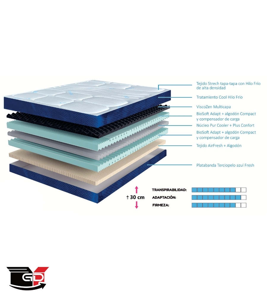 Compuesta por núcleo Biopur Cool Plus Confort y capa ViscoZen Multicapa